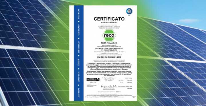 Con il certificato emesso dal TUV è dimostrato che in Reca Italia vengono attuati i processi necessari per analizzare e ridurre il consumo di energia e migliorare ed efficientare il rendimento energetico.